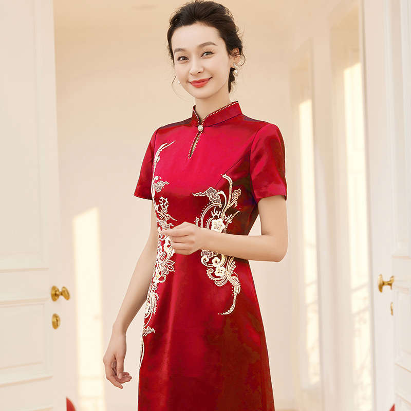 Xi gaun pesta pernikahan cheongsam, gaun jamuan makan ibu, gaun bersulang elegan gaya nasional retro musim semi dan musim panas 2024