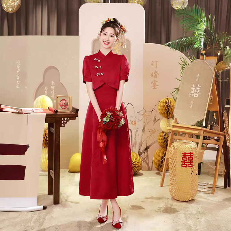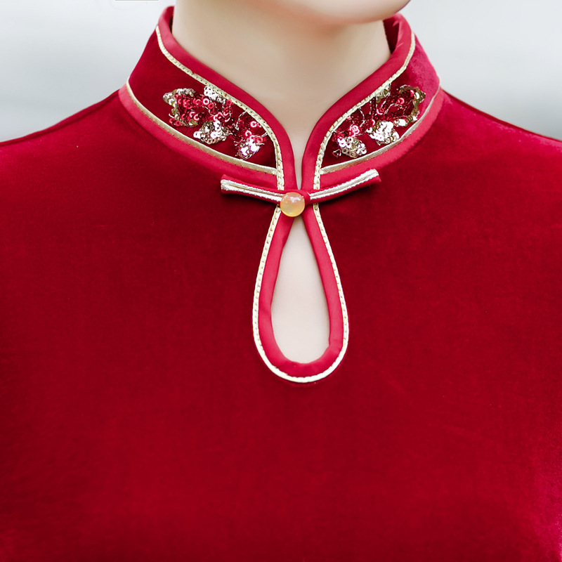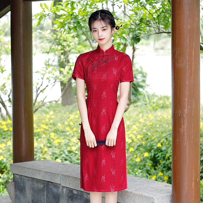 Tang Zhilian baju cheongsam Xi, baju outwear baru musim semi dan musim panas, baju ibu dalam hukum Xi, baju cheongsam Xi, peningkatan gaya Tiongkok merah, Tang Zhilian