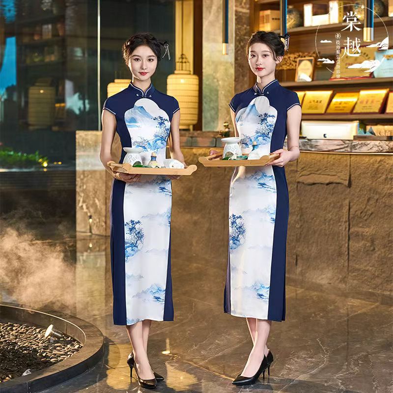 Ai Qi gaun Cheongsam bordir panjang wanita, gaun jamuan makan Harian musim semi dan musim panas 2023