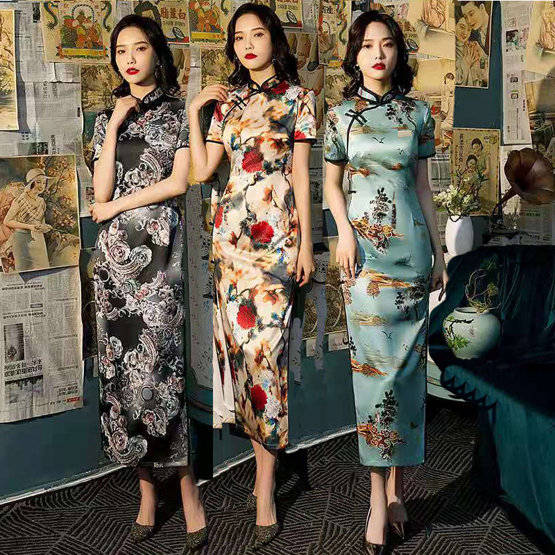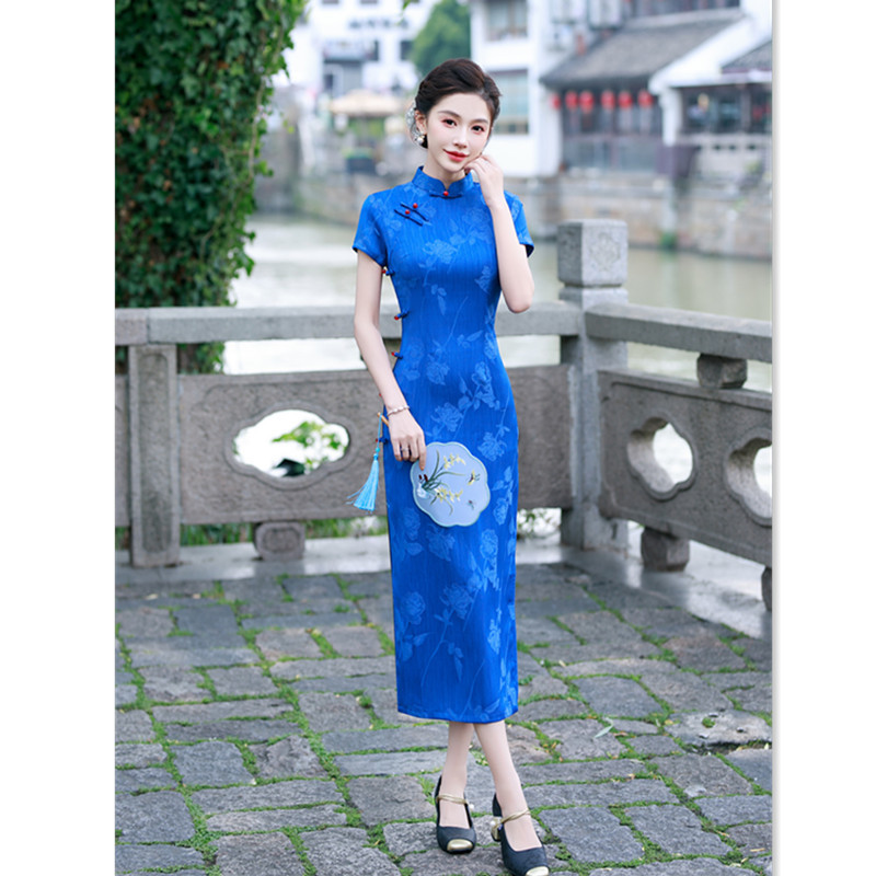 Gaun cheongsam panjang gaya etnik, gaun cheongsam harian Tiongkok baru ditingkatkan mode baru musim panas 2023