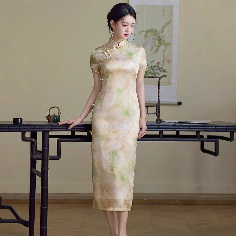 Cheongsam Gaya Tiongkok Baru Elegan Gaya Baru Tahun 2025 Gaya Baru Model Muda Sehari-hari Terlihat Langsing Elegan Peri Rok Cheongsam Muda Model Panjang
