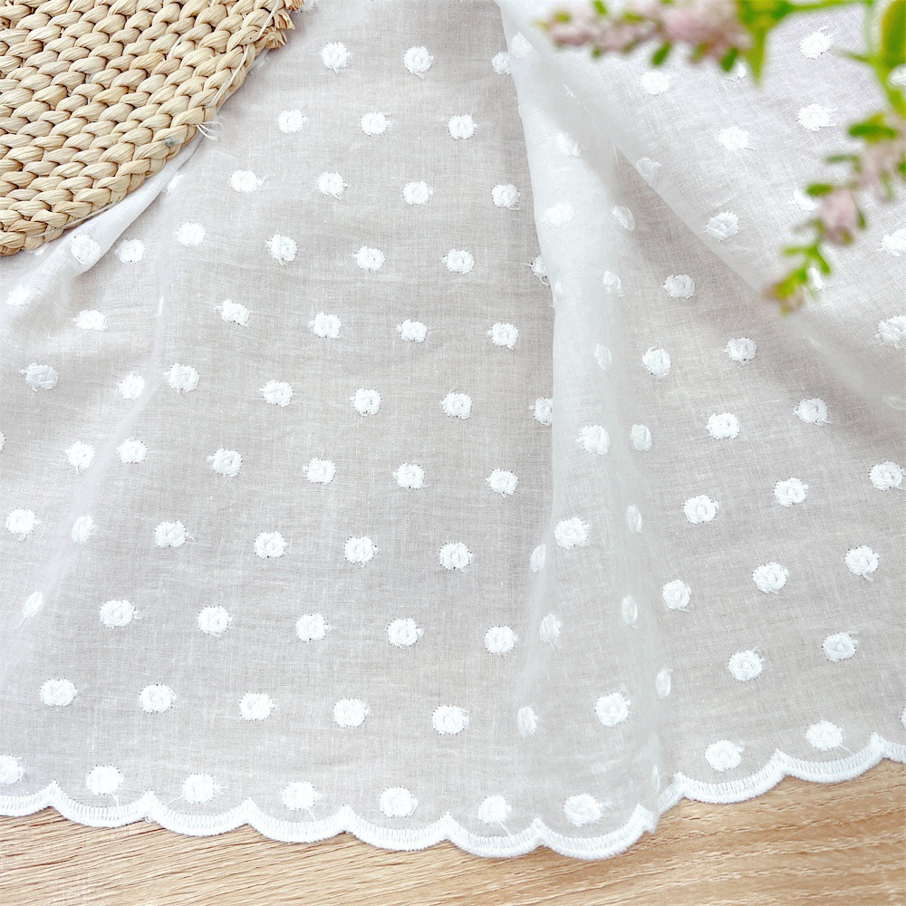 Kain Bordir Polkadot Warna Putih Katun Murni Pakaian Anak-anak Musim Semi Musim Panas Rok Kain Katun Bordir Indah Pinggiran Renda Bergelombang