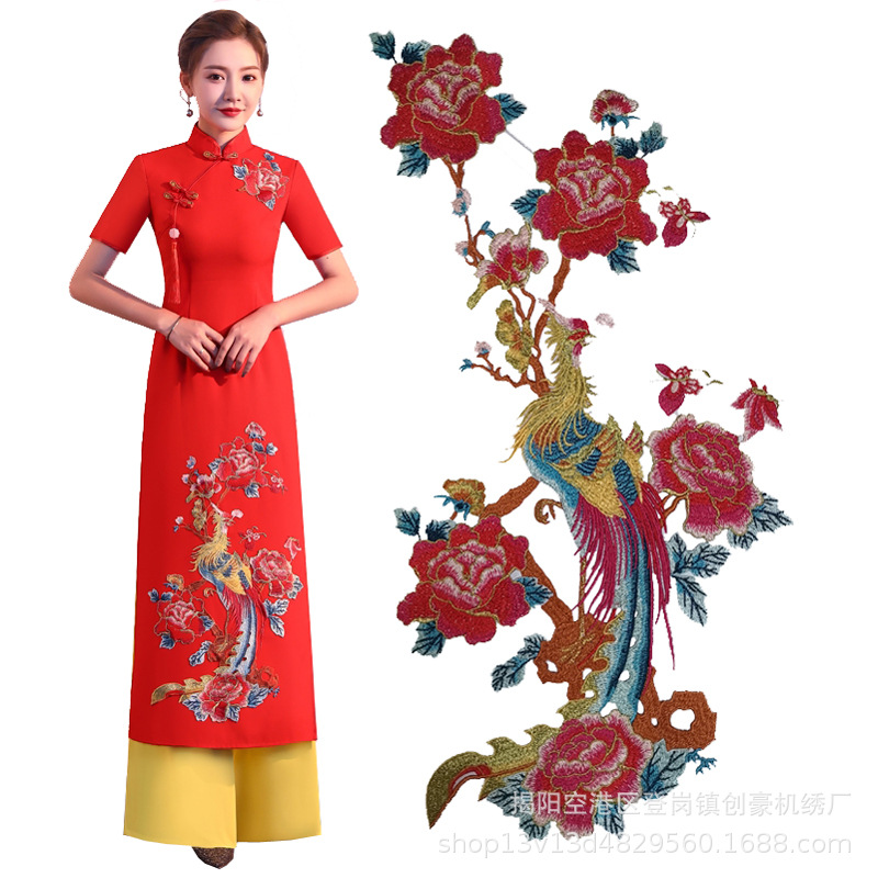 Chuanhao bordir aksesori gaya Cina bordir larut air bordir applique peoni Phoenix pakaian aksesoris