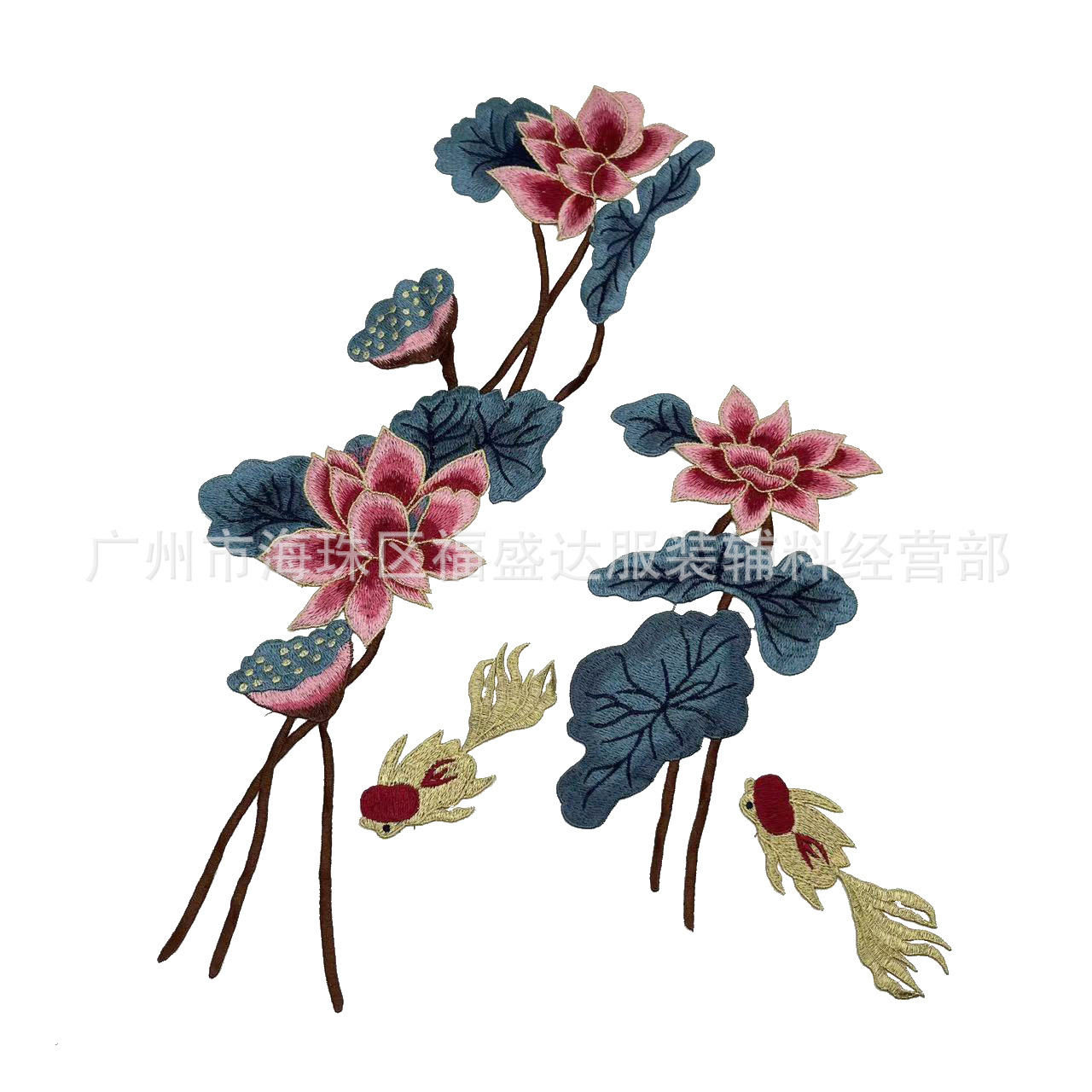 经典复古刺绣水溶荷花 淡雅汉服优雅旗袍装饰辅料无背胶车缝贴花