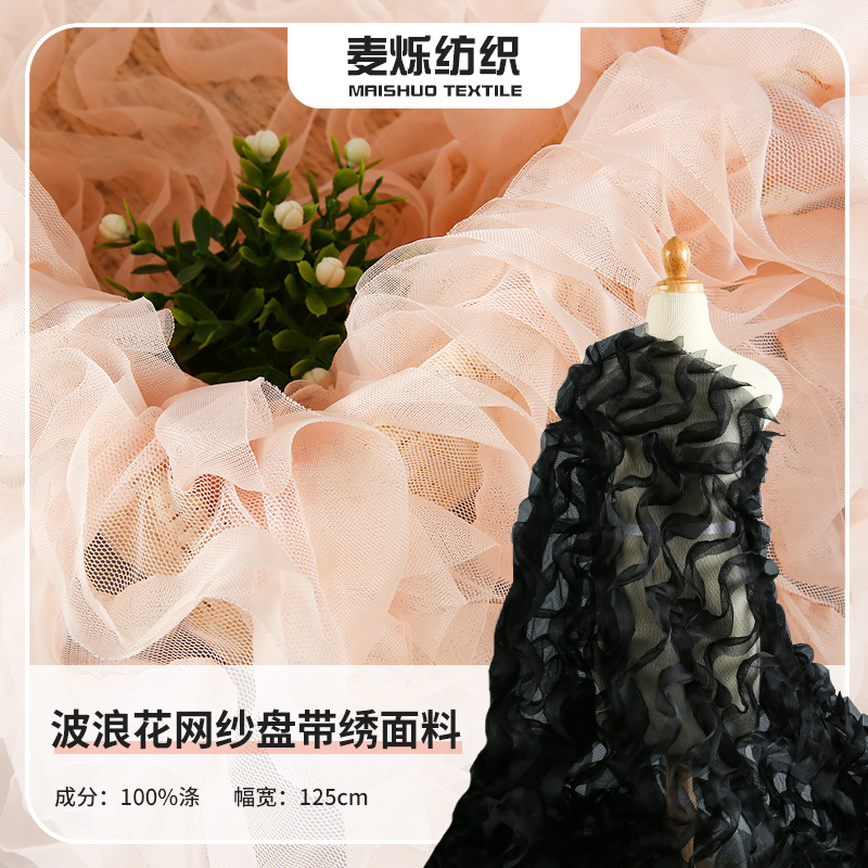 法式蕾丝刺绣碎花网纱连衣裙婚纱布料批发牡丹花绣花网布花边满幅