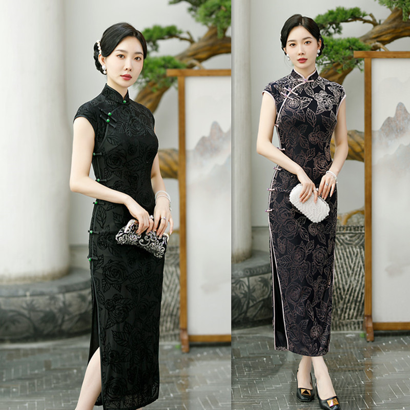 Gaun Cheongsam beludru modifikasi muda, gaun cheongsam retro gaya Tiongkok ditingkatkan grosir Musim Panas 2020