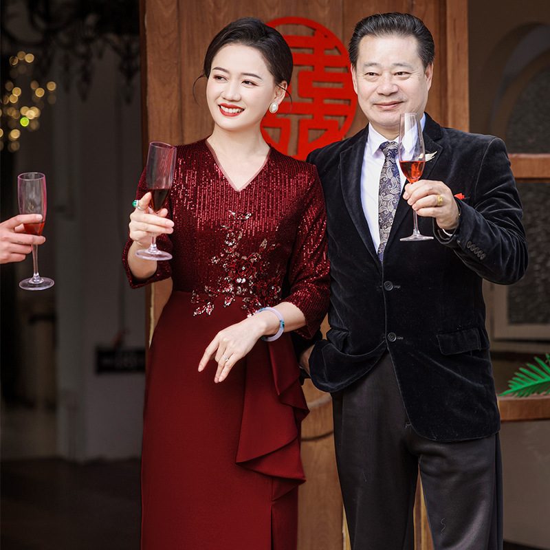 Gaun pernikahan Happy mother-in-law, Gaun hukum pernikahan cheongsam ibu pengantin elegan musim semi dan musim gugur 2023
