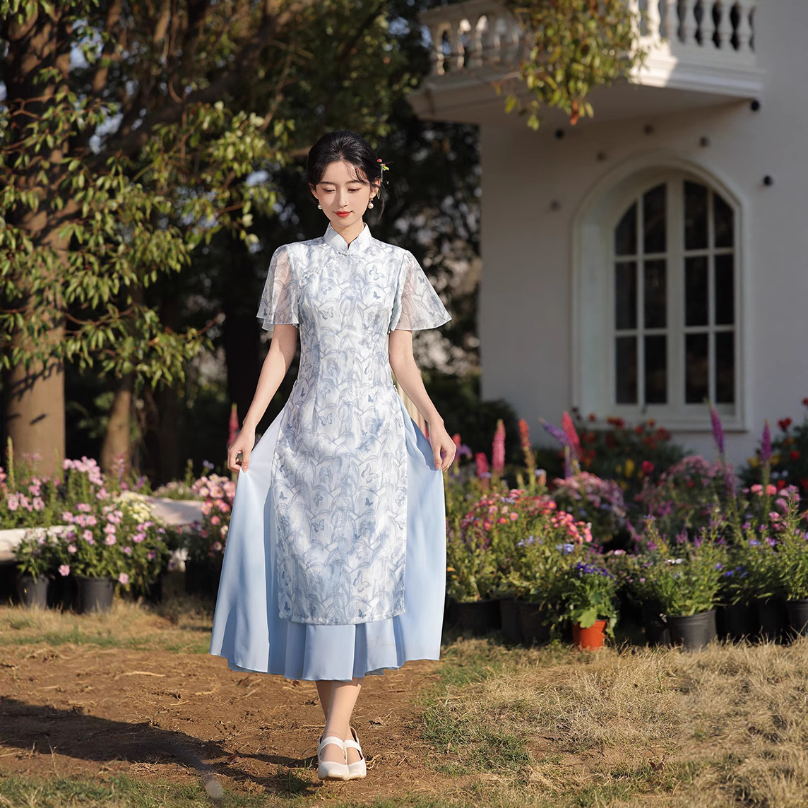 Cheongsam Gaya Tiongkok Bunga Audai Rok Cheongsam Gaya Republik Tiongkok Membentuk Badan Modis yang Diubah dan Elegan