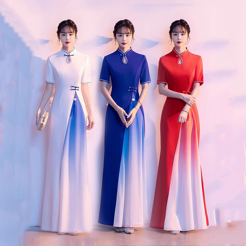 Gaun bergaya Cina yang elegan untuk wanita, model baru yang ditingkatkan untuk pertunjukan upacara dan bersulang, pakaian pertunjukan yang pas di badan.