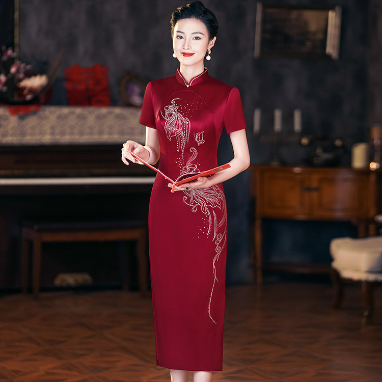 Gaun pernikahan Happy mother-in-law 2024 baru bordir asetat gaun pernikahan cheongsam muda gaya Barat 22D112