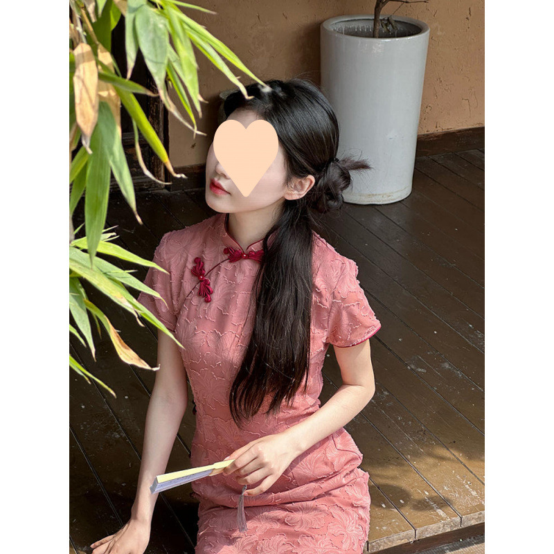Cheongsam Warna Merah Muda Gaya Tiongkok Baru Musim Panas Gaya Republik Muda Setiap Hari Sertifikat Pertunangan Sehari-hari Rok Gadis Model Baru