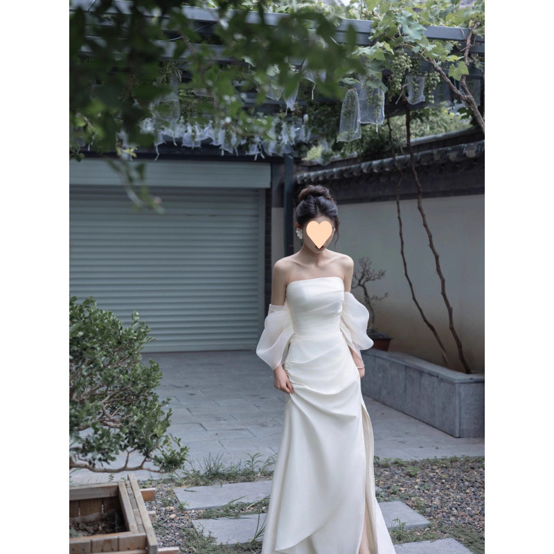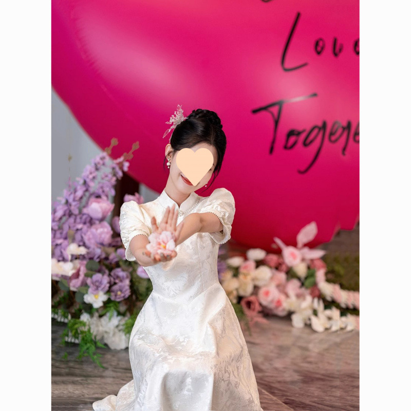 Gaun Pertunangan Cheongsam Warna Putih Rok Putih Kecil Sertifikat Pernikahan Model Baru 2025 Pakaian Pesta Retro Gaya Tiongkok Baru