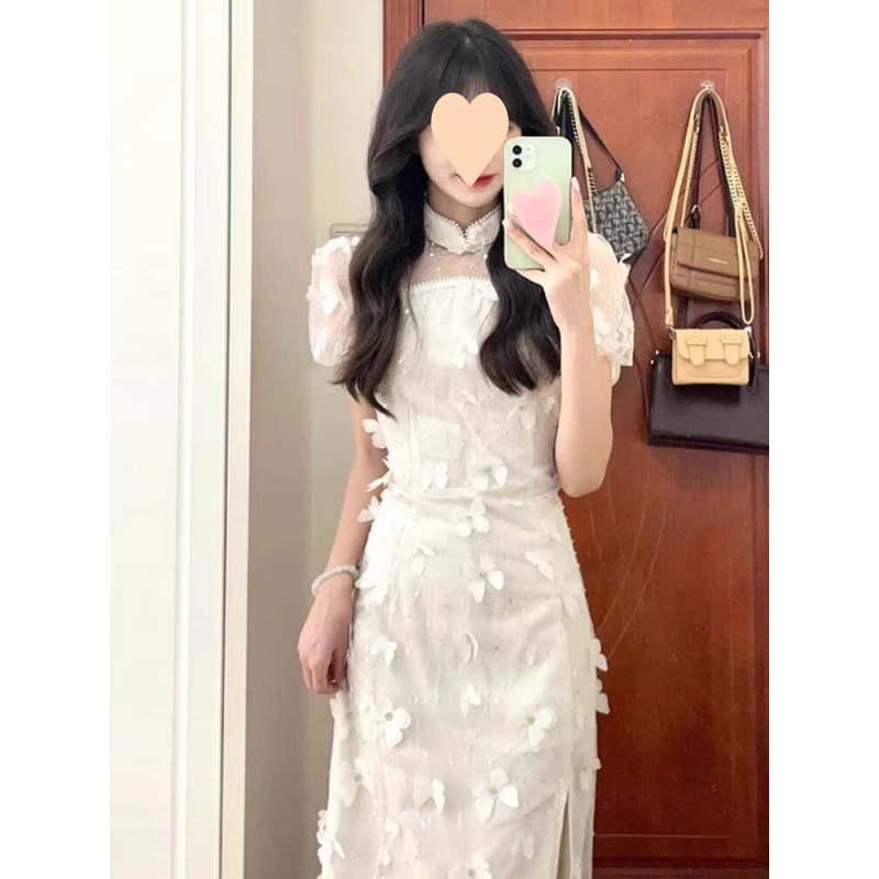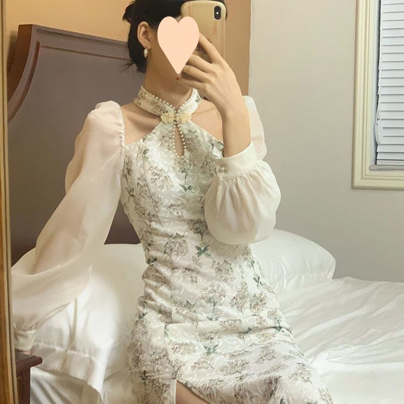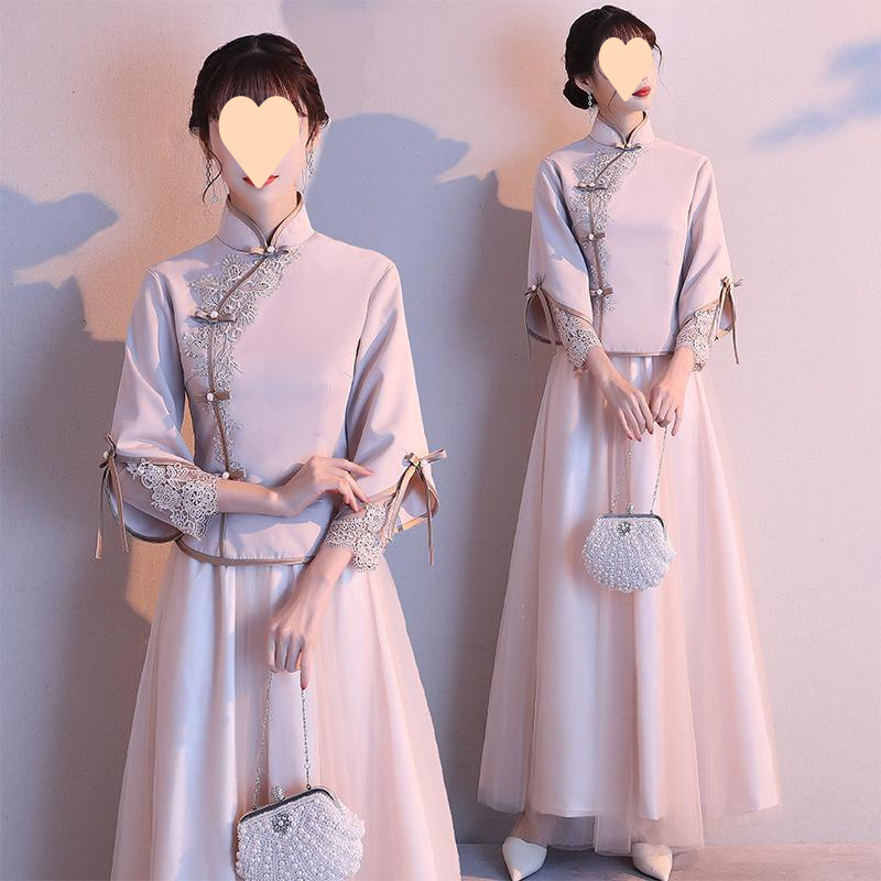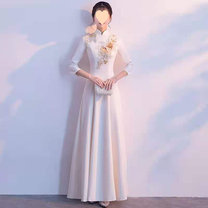 Rok Panjang Wanita Tiga Dimensi yang Diubah Pakaian Paduan Suara Pakaian Pertunjukan Cheongsam Lengan Tujuh Perempat Model Baru Musim Semi Cina Model Muda