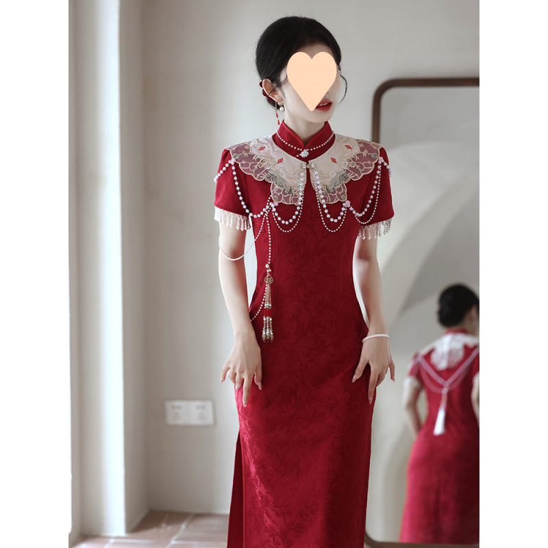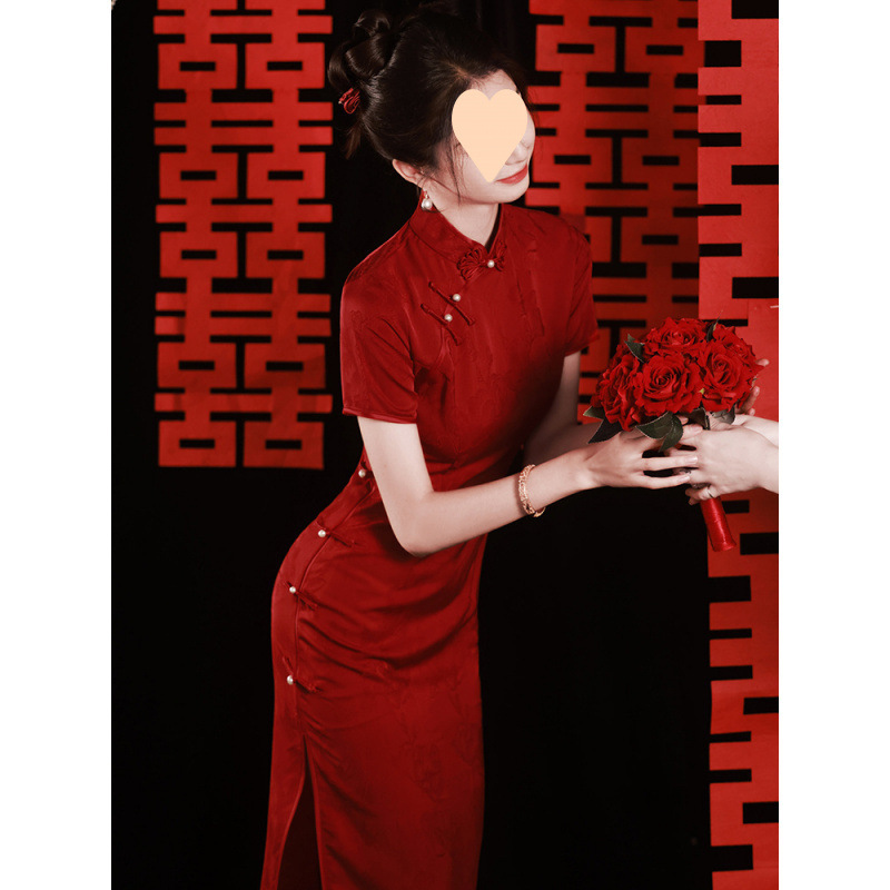 Pakaian Bersulang Modifikasi Cheongsam Pengantin Wanita Gaun Pertunangan Merah Gadis Muda Model Baru Gaya Tiongkok Musim Panas Elegan Kelas Atas