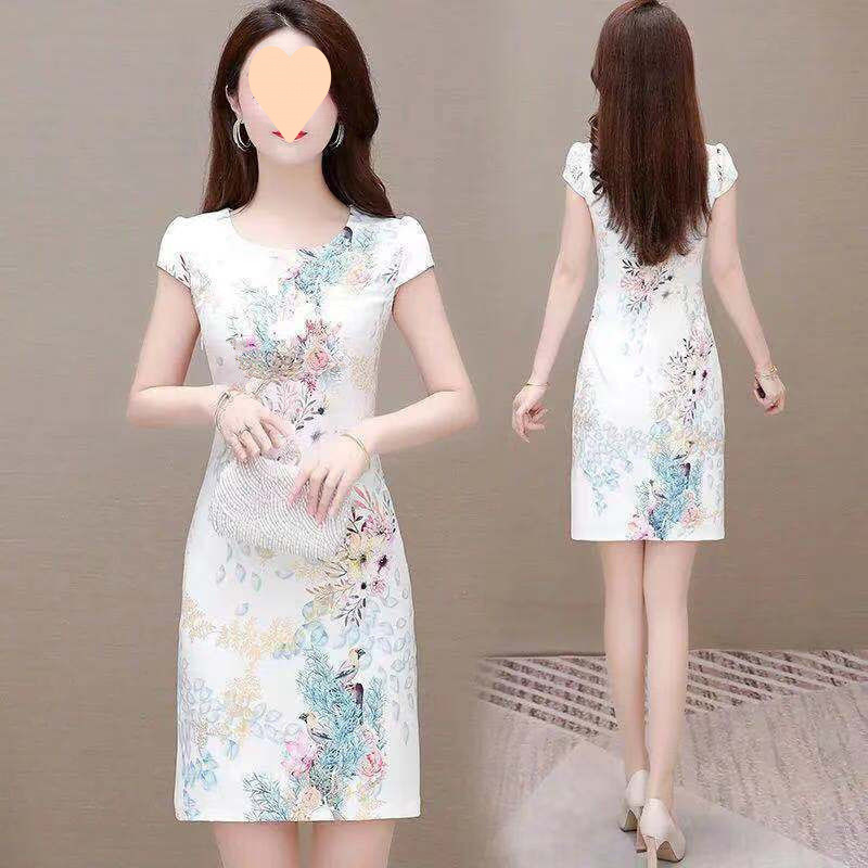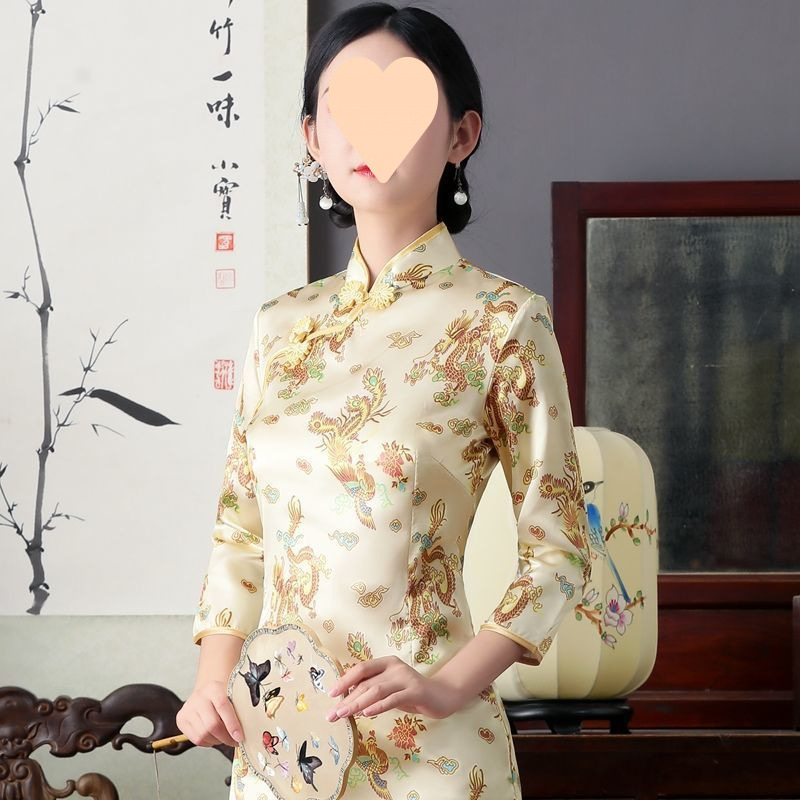 Gaun Cheongsam Ibu mertua Gaun Wanita Model Setengah Panjang Retro Pakaian Ibu Model Muda Orang Kecil Terlihat Langsing Membentuk Tubuh