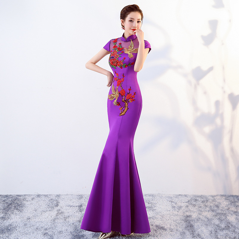 Gaun jamuan pernikahan ibu ungu happy mother-in-law cheongsam noble dan elegan mother-in-law dapat dipakai setiap hari untuk pernikahan