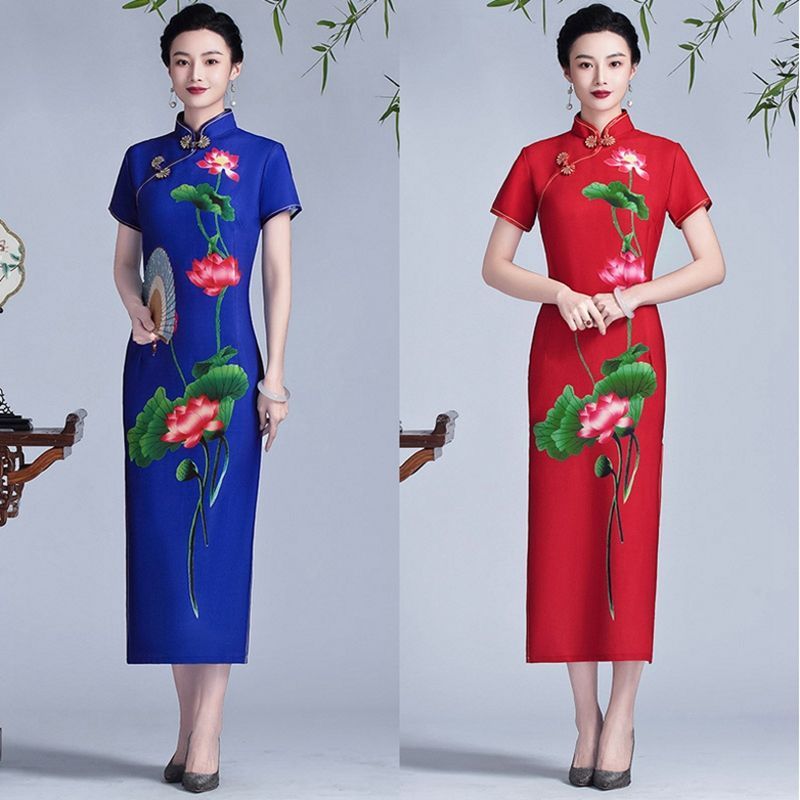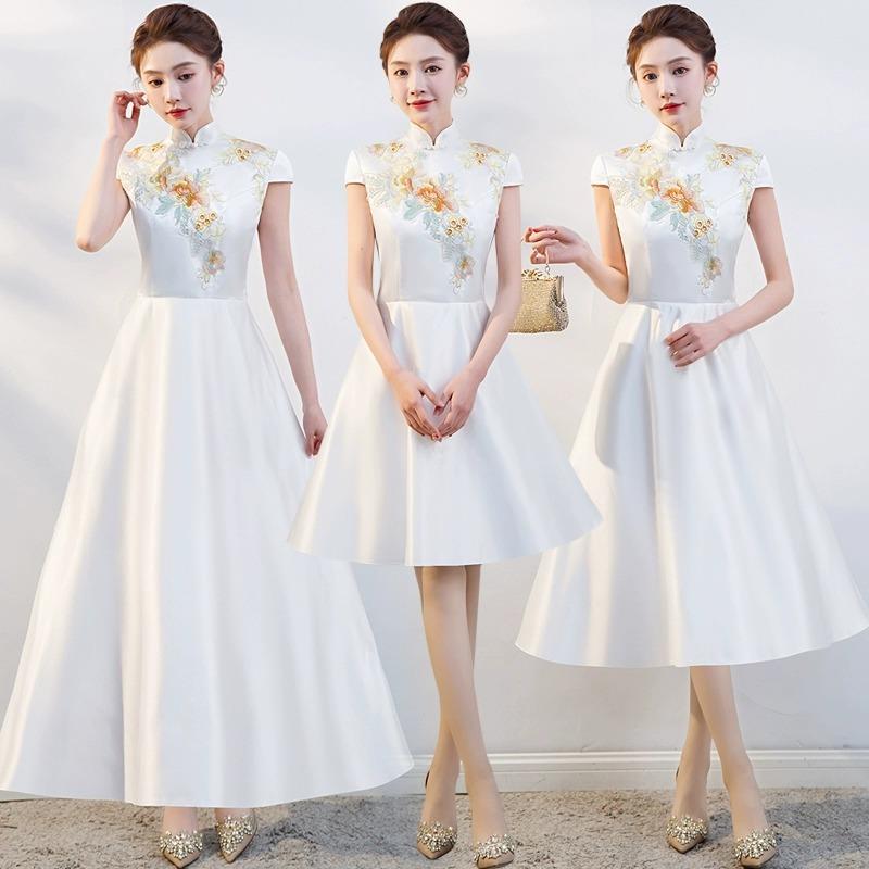 Gaun malam cheongsam Tiongkok untuk wanita, gaun cheongsam pengiring pengantin tuan rumah, upacara penghargaan gaya Tiongkok, gaun pertunjukan retro untuk wanita