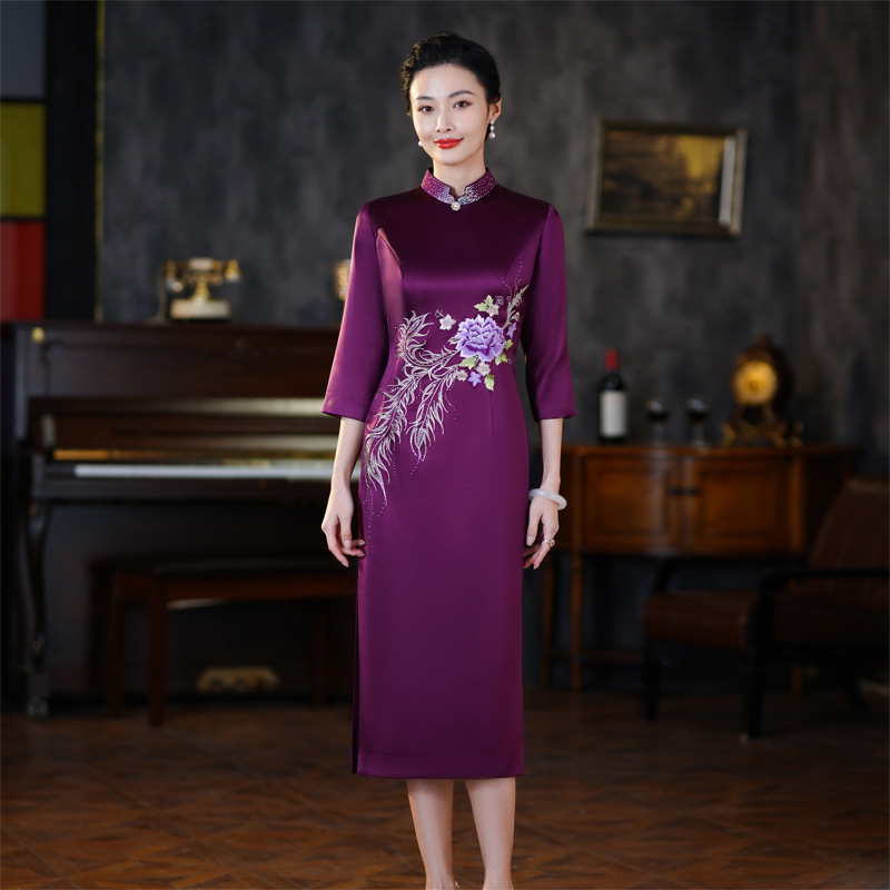 Xi gaun pernikahan mertua, baju pernikahan cheongsam asetat, baju ibu kelas atas, temperamen musim gugur dan musim semi