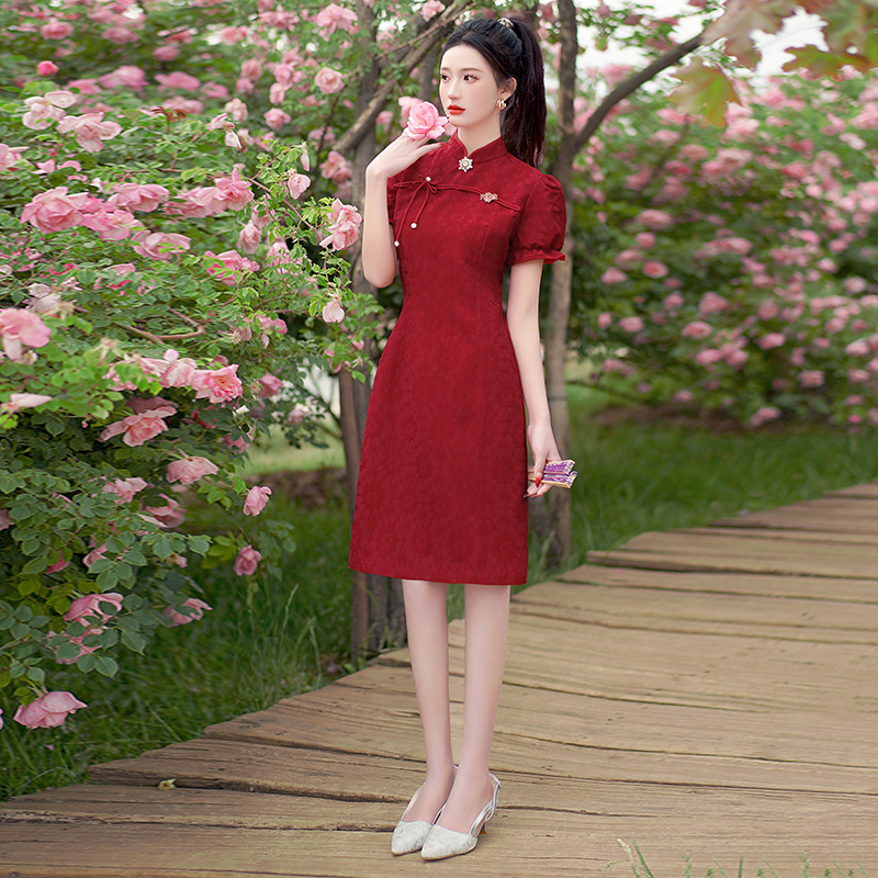 Cheongsam Gaya Nasional Merah Musim Panas Model Baru 2024 Ujian Masuk Perguruan Tinggi Cheongsam Modifikasi Gaun Gaya Cina Baru