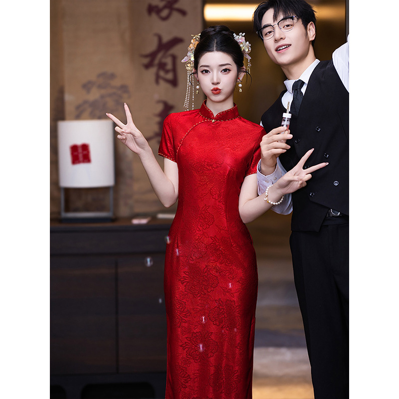 Cheongsam Merah Pakaian Bersulang 2025 Gaun Gratis Baru Model Baru Gaya Tiongkok Baru Pertunangan Modifikasi Bisa Dipakai Wanita Musim Panas