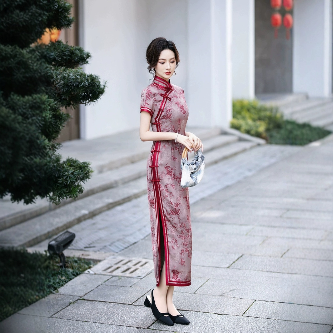 2025 Musim Semi dan Musim Panas Model Baru Gaya Cina Baru Ibu mertua Model Panjang Lengan Pendek Shanghai Lama Ujian Masuk Perguruan Tinggi Sehari-hari Shanghai Rok Cheongsam