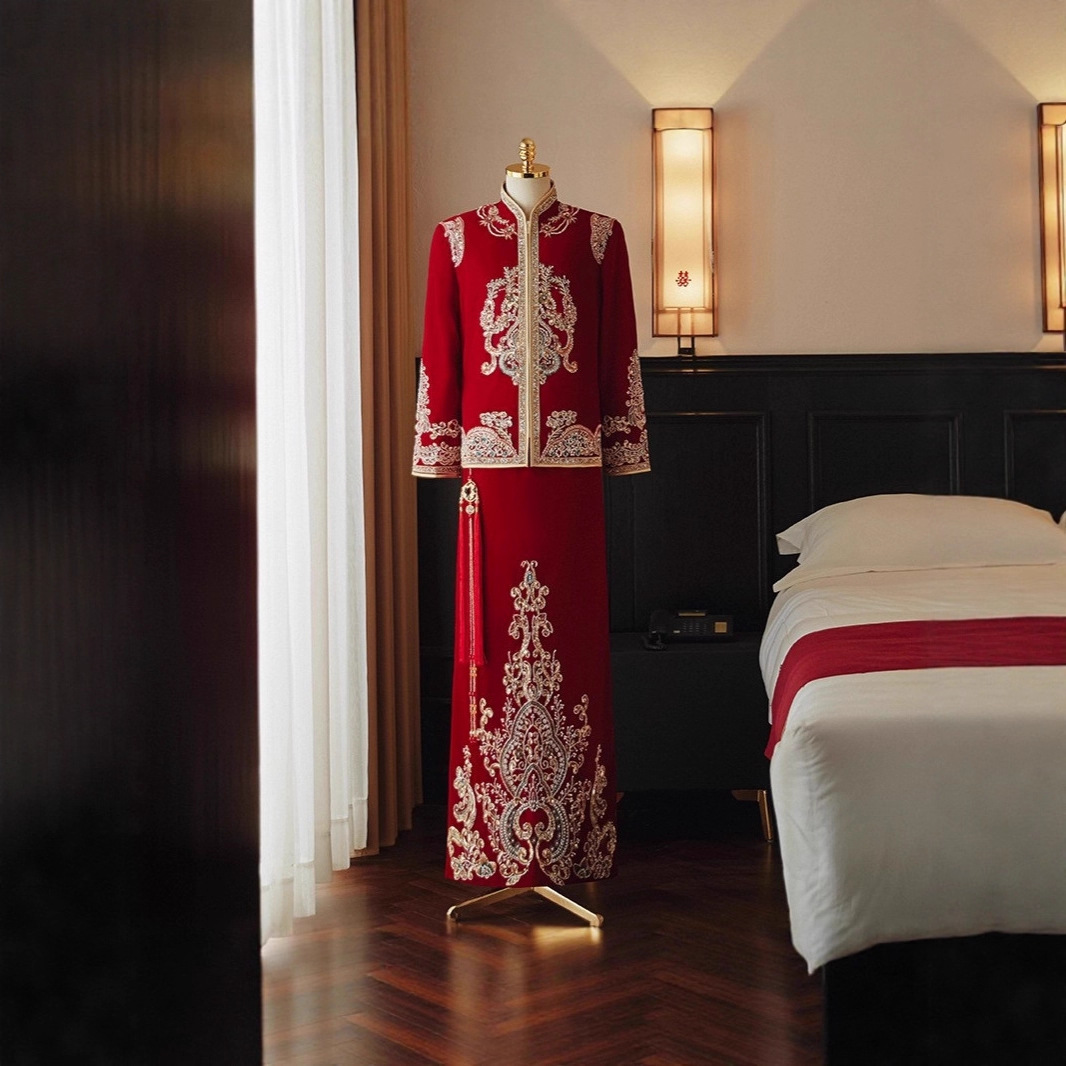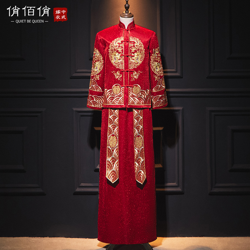 Pakaian Beludru Xiu He Pakaian Pengantin Pria Gaun Pesta Pernikahan Model Baru 2025 Gaya Tiongkok Pakaian Tang
