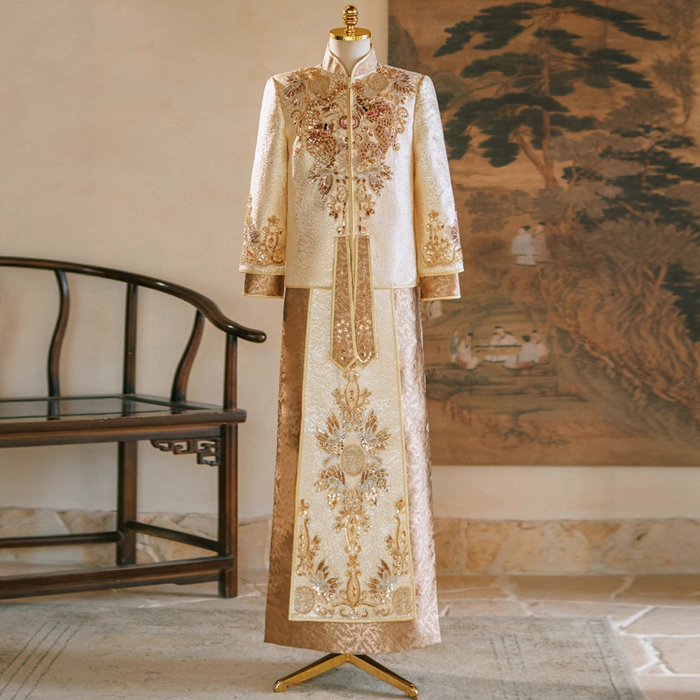 香槟色男士秀禾服新郎新中式秀和服婚服2026新款接亲龙凤褂男批发
