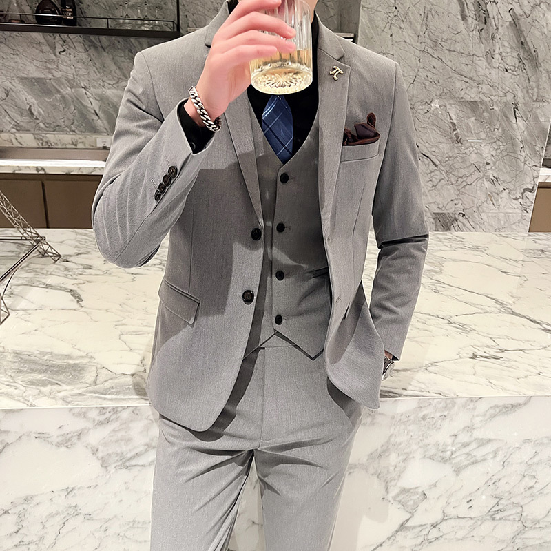 Setelan pakaian pria tiga potong slim-fit Korea setelan kasual bisnis gaun formal pengantin pria setelan pakaian pernikahan terbaik
