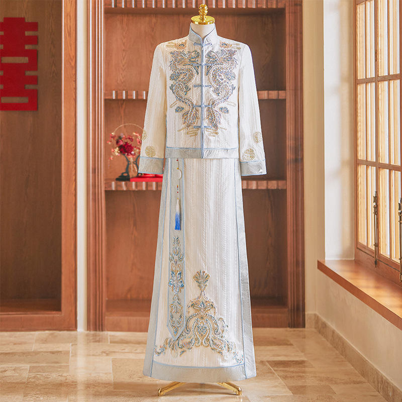 Pakaian pernikahan Xiuhe pria, gaun pengantin gaya China baru, gaun pernikahan naga dan phoenix, setelan Tang untuk pria 2024