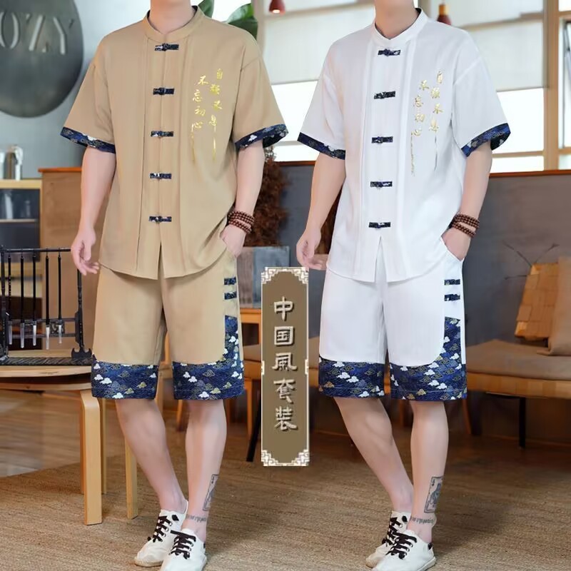 夏季男士新中式中国复古唐装套装男短袖宽松短裤潮流国风两件套