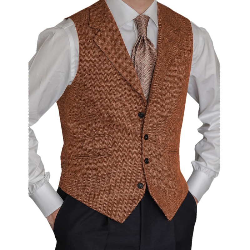 Rompi pria Inggris, rompi setelan pabrik pola herringbone pria terbaik pernikahan