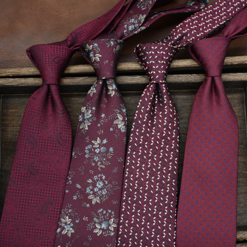 Pakaian formal pria gaya Korea, pakaian bisnis kerja pelajar pola buatan tangan 8CM retro merah anggur pengantin pria