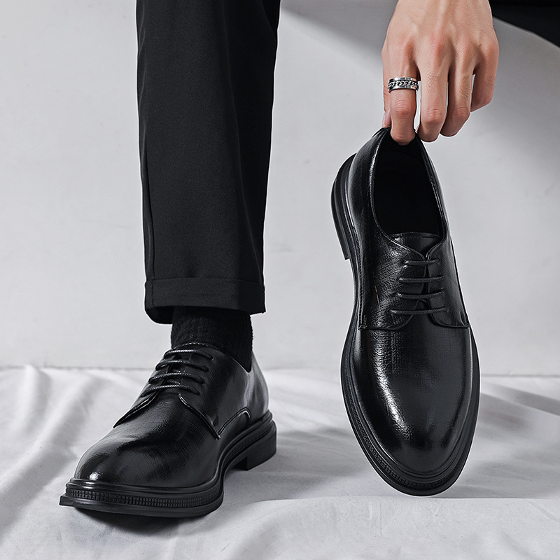 Sepatu Kulit Pria Pakaian Formal Bisnis Kasual Gaya Inggris Sepatu Sol Empuk Pria Kulit Asli Penambah Tinggi Warna Hitam Sepatu Pengantin Pria