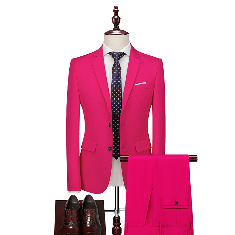 Setelan bisnis kasual pelajar gaya Korea, Setelan khusus pria terbaik magenta 662 5130 dua potong