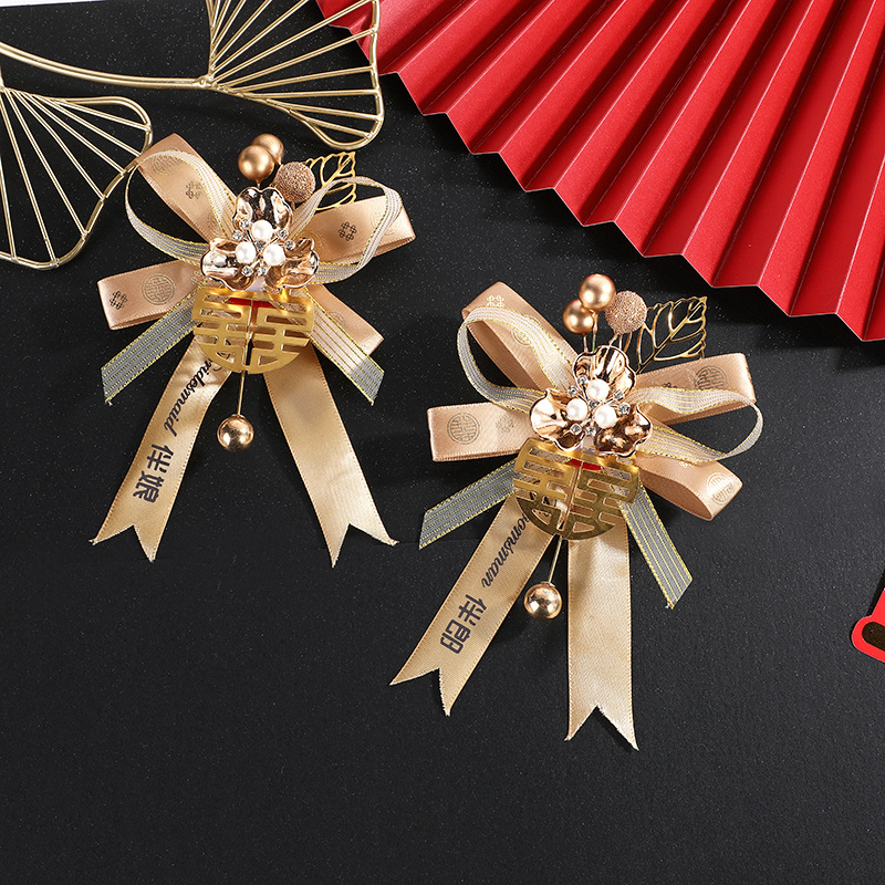 Gaun pengantin korsase pernikahan meriah kelas atas Tiongkok Aksesori korsase pengantin perempuan bros karakter Xi perlengkapan pernikahan