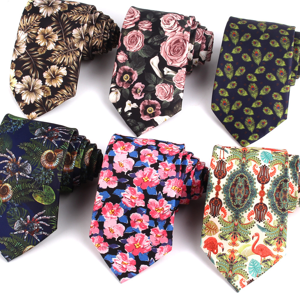Setelan pakaian pesta, pria dan wanita dasi gaya Korea cetak bunga 8cm pesta pernikahan MC pengantin pria setelan aksesoris kerah dalam stok