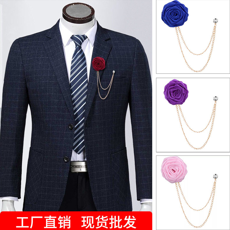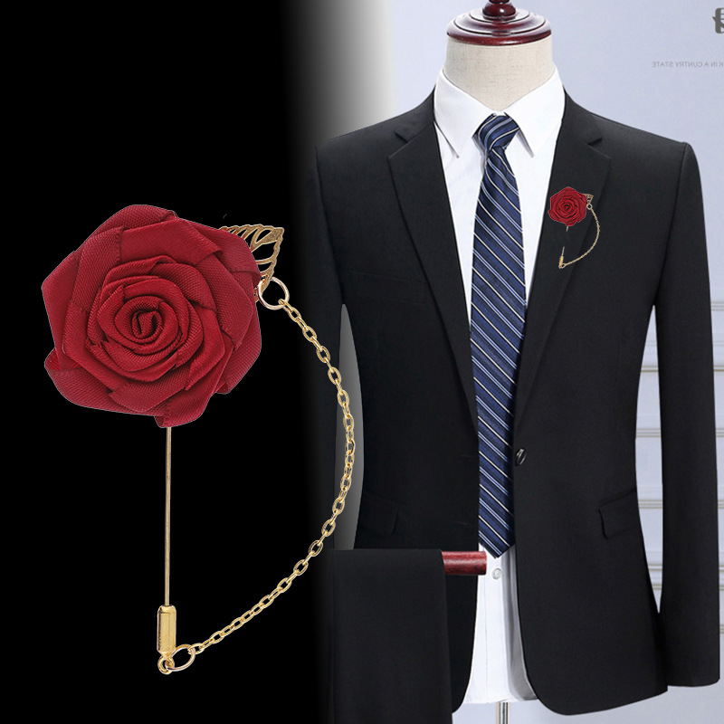 Buatan tangan kain mawar rumbai setelan bros pria setelan pengantin laki-laki pernikahan gaun korsase aksesoris kata pin