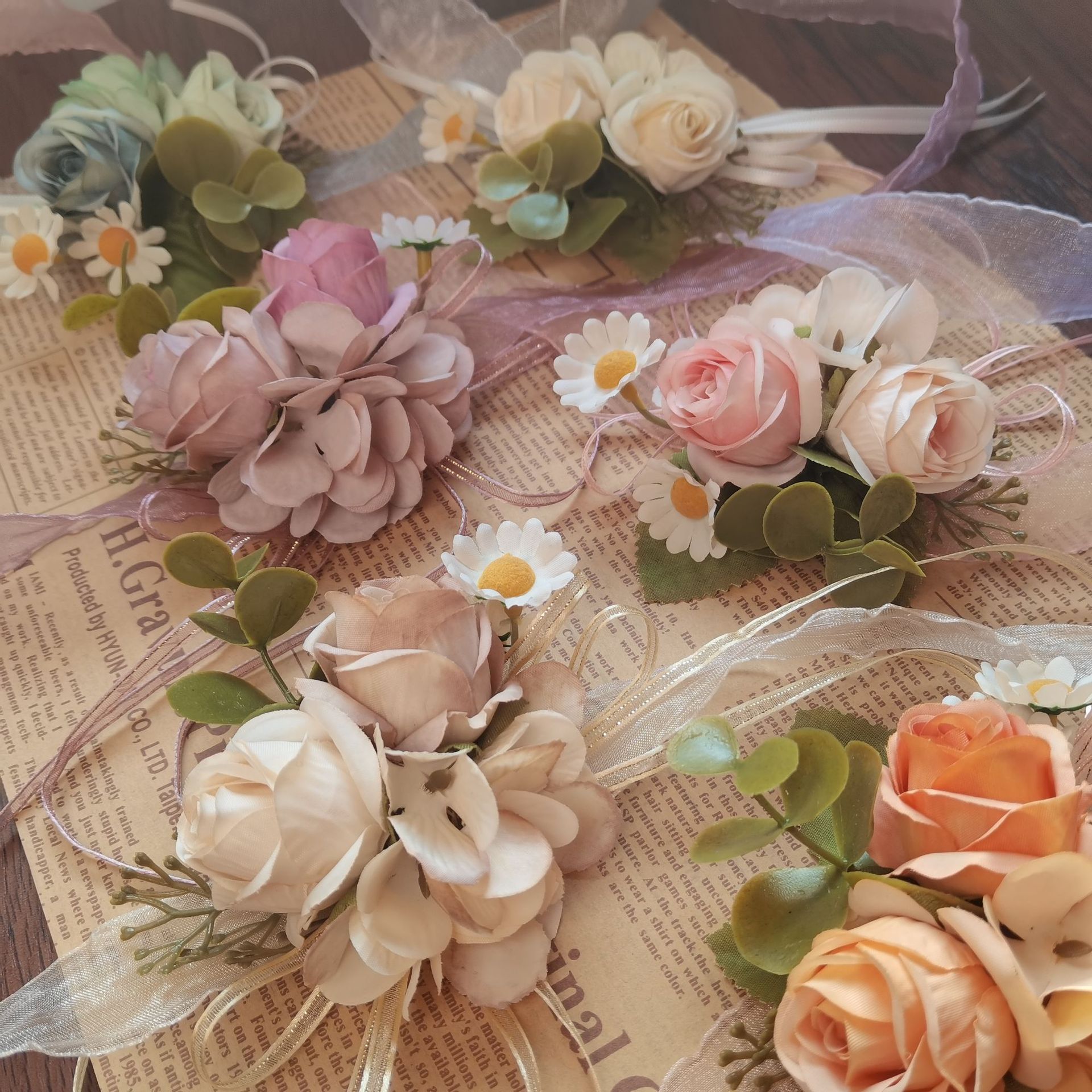 Hiasan Foto Studio Foto Gaun Pengantin Bunga Imitasi Warna Ungu Bertali Super Peri Bunga Korsase Bunga Tangan Pengantin Pengantin Pria