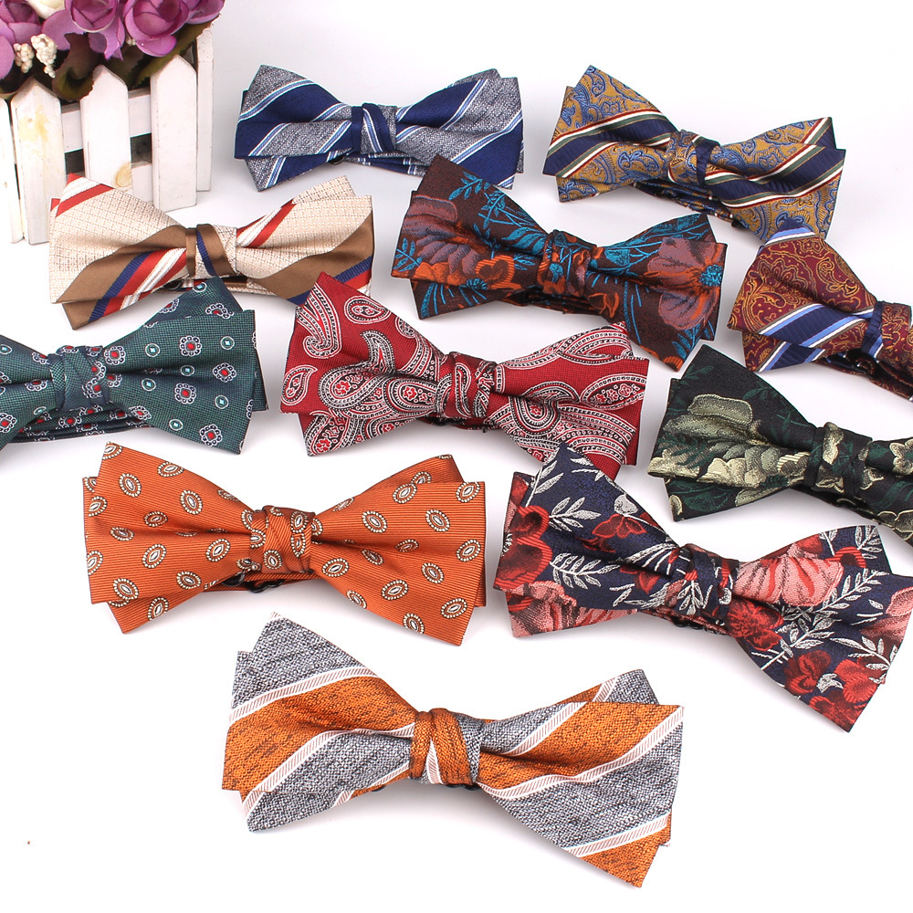 Dasi kupu-kupu dalam stok pria dan wanita gaya Korea fashion tidak teratur bunga poliester dua lapisan pengantin pria pengiring mempelai setelan aksesoris