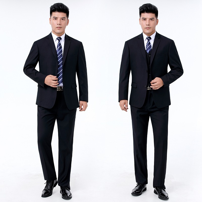 Setelan jas wol biru dongker profesional untuk pria, pakaian pengantin pria, jas formal untuk manajer di perusahaan milik negara dan asing.