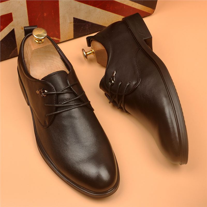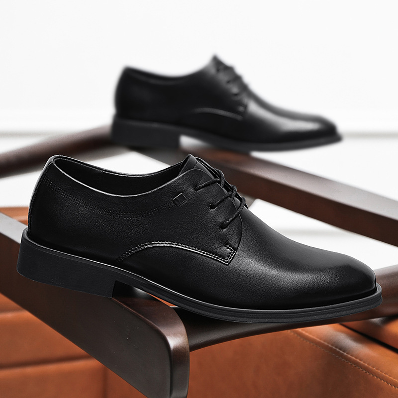Sepatu formal bisnis pria, alas kaki kulit sapi lapisan pertama musim gugur dan musim dingin, kasual tahan aus cocok untuk semua