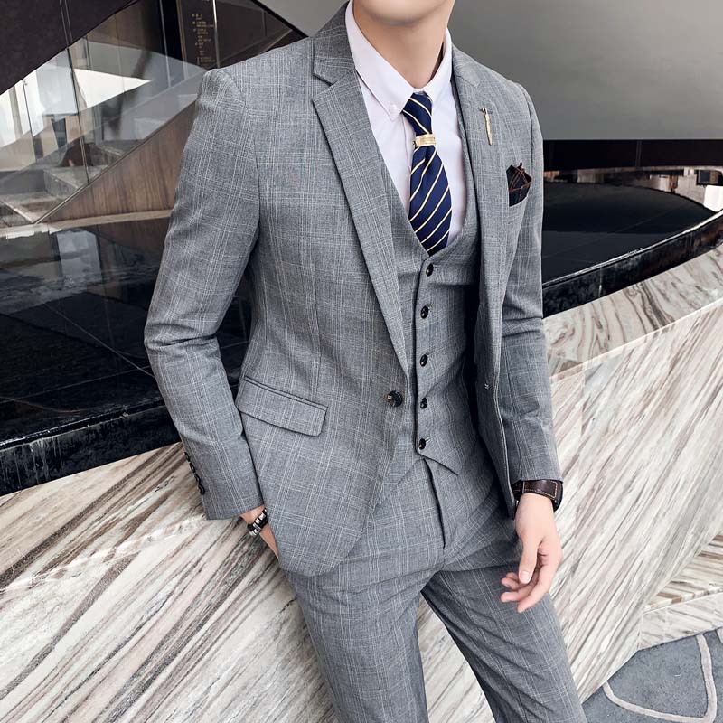 Setelan pakaian kasual pria kelas atas gaya Korea slim-fit gaun formal pengantin gaun pernikahan setelan kecil profesional Inggris