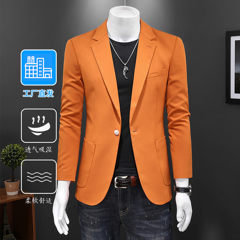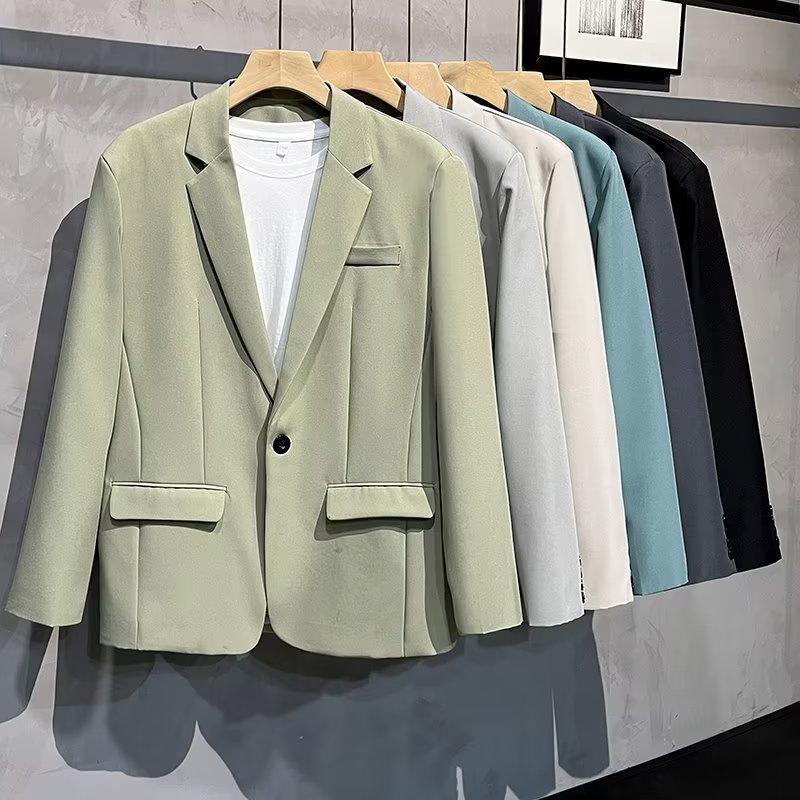 Mantel warna polos gaya Korea musim semi dan musim gugur gaun pernikahan pengantin pria setelan modis pakaian bisnis kasual Inggris ramping