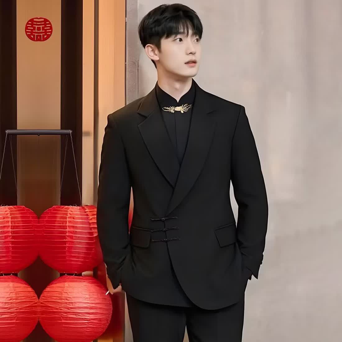 Setelan Pria Model Baru Musim Semi dan Musim Gugur Gaya Tiongkok Baru Setelan Pria Gaun Pernikahan Pengantin Pria yang Pertunangan Setelan Pakaian Tang Kelas Atas Zhongshan