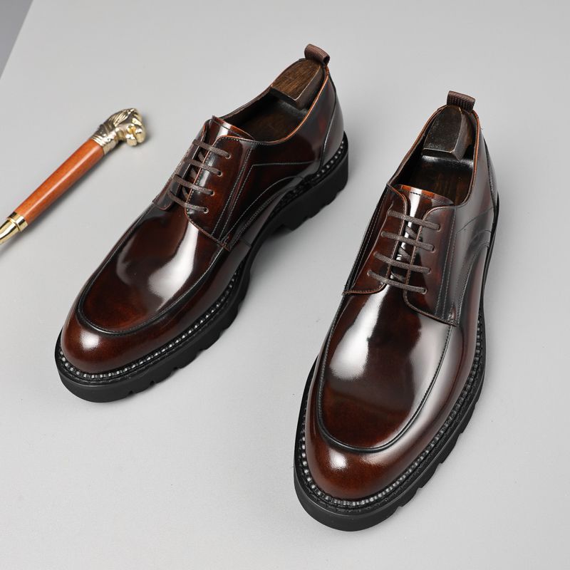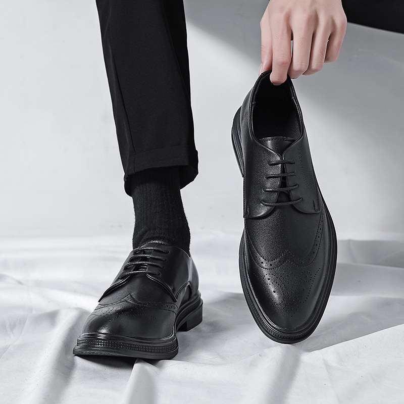 Sepatu kulit pengantin pria, sepatu kulit musim semi, sepatu pernikahan pria, pakaian formal pria penambah tinggi, sepatu brogue cocok tampan