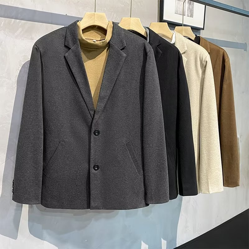 Setelan jas wol untuk pria, setelan jas kecil kasual profesional bisnis pernikahan ruang mempelai wanita, mantel Atasan wol ketat gaya Korea musim gugur dan musim dingin