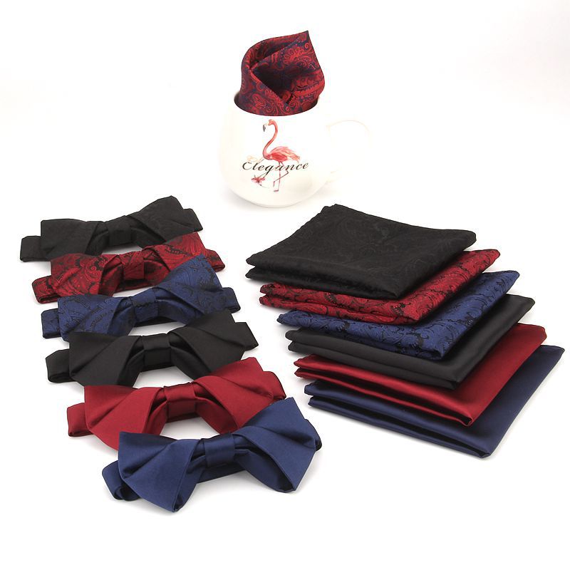 Setelan handuk bersaku dasi kupu-kupu baru trendi setelan pernikahan pengantin pria trendi setelan pria persegi syal pernikahan ungu anggur merah