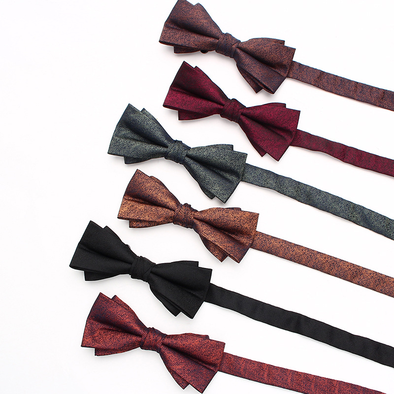 Pakaian setelan modis warna polos untuk pria, dasi kupu-kupu dua warna polos untuk pernikahan pengantin pria, merah anggur, aksesori pakaian modis pita Inggris untuk pria