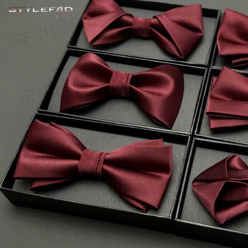 Dasi Kupu-Kupu Matte Setelan Pakaian Pernikahan Pria Dasi Kupu-Kupu Warna Merah Pengiring Pengantin Pria Warna Polos Aksesori Dua Lapis Pria Pernikahan Setelan
