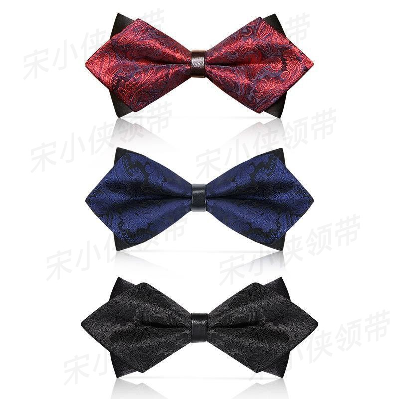 Gaun pernikahan trendi untuk pria, gaun pengantin pria terbaik dengan pita anggur merah/hitam motif mete dasi kupu-kupu